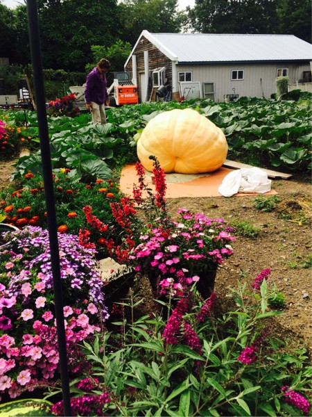 Pin hole in her bottom...she's still creeping along but it won't be long now...sorry Eddie ...I blame Mother Nature this year...there's lambchop lookin for another baby pumpkin ...never give up right?...we'll weigh it when she stops