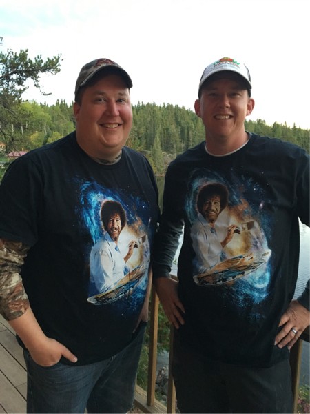 My brother and I got some bitching fishing shirts for the trip....happy little trees ...little van dyke brown ...
