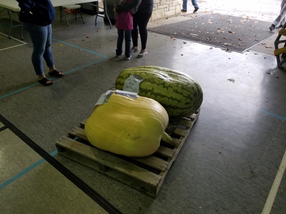John Barlow was nice of enough to let my dad borrow his state record 257 lb watermelon to display at some farmer markets coming up, was lucky it fit on the same pallet as my dad's giant pumpkin