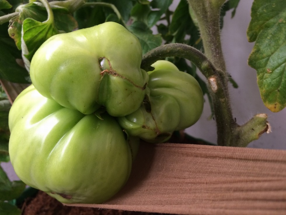 The 4.86 is still growing. BER spot on bottom of big section hasn't gotten any bigger and tomato seems to be growing well. Hopefully it stays that way. This is at 44 DAP. A small possible 4th tomato in the middle of the picture. So looks like the twin might actually be a quad.