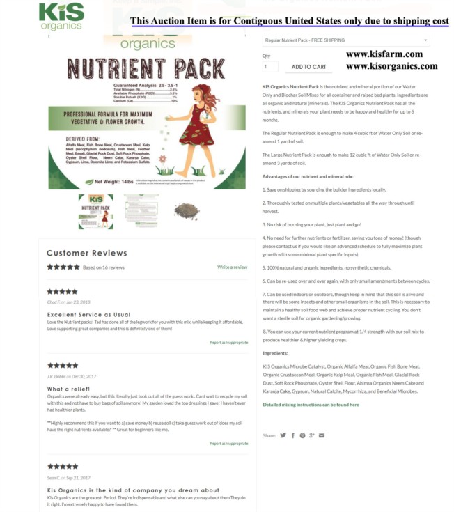 This lot contains one1385.5 Howell/Jollivette seed and a Nutrient pack valued at $50 from Keep It Simple Farm & KIS Organics Designed for raised bed gardens these Ingredients are all organic and natural (minerals). The KIS Organics Nutrient Pack has all the nutrients, and minerals your plant needs to be happy and healthy for up to 6 months. https://www.kisorganics.com/collections/organic-soil-for-sale-bulk-potting-soil-mix/products/kis-organics-nutrient-pack
