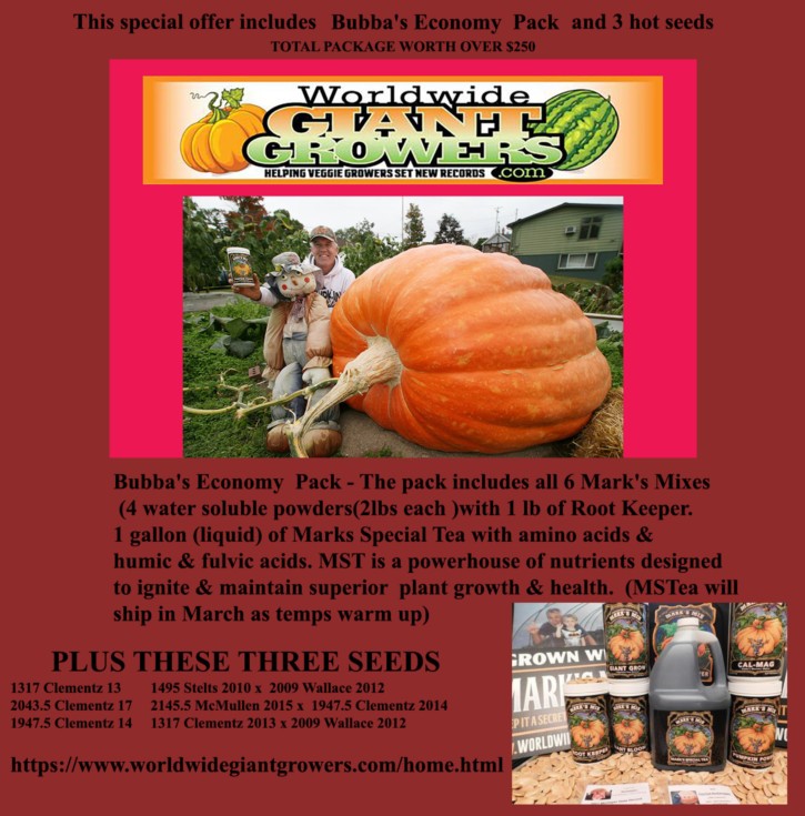 I great addition to the IGPGA Silent Action, a complete growing package from the WWGG worldwidegiantgrowers Mark Clementz's fertilizers and three top seeds Mark will mail this package to the lucky buyer of this Lot https://www.worldwidegiantgrowers.com/