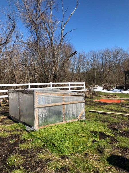 Wow...things are melting quick......those short growing weeds that are a tremendous pain in the ass to pull really thrived under the hoophouse this winter...glad I left that there ....