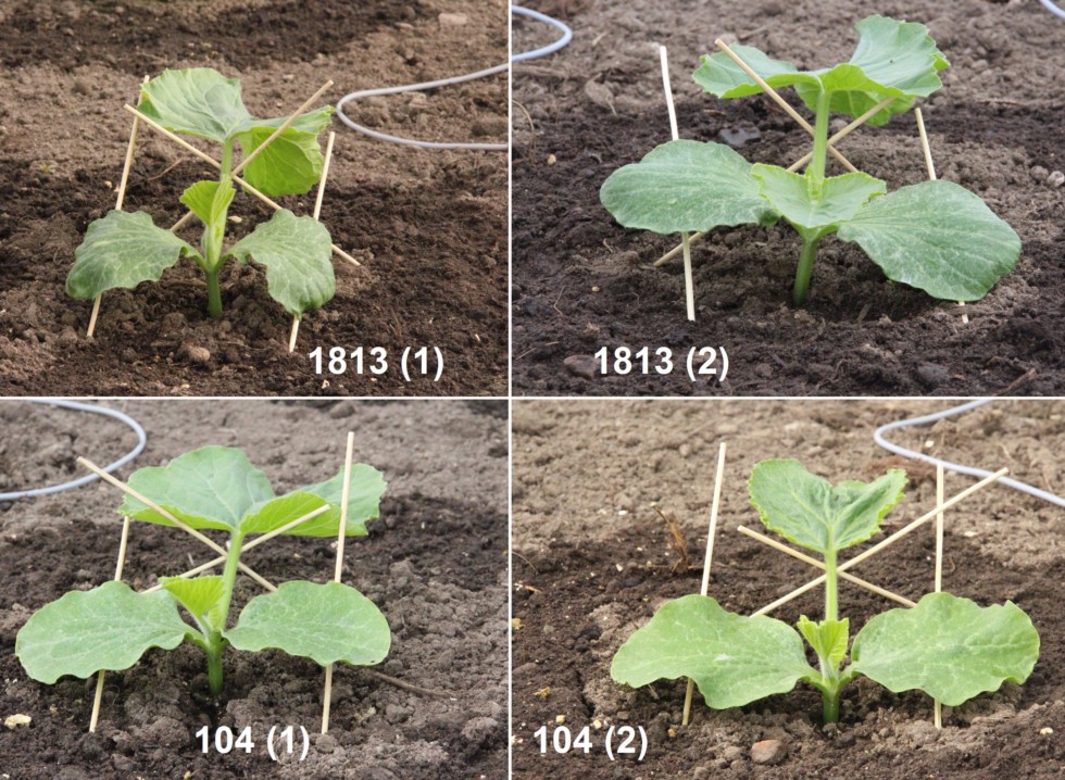 Plants of plot 2 :D Looks like 1813 (2) and 104 (1) are the stronger plants (which is good for their further vine pattern).