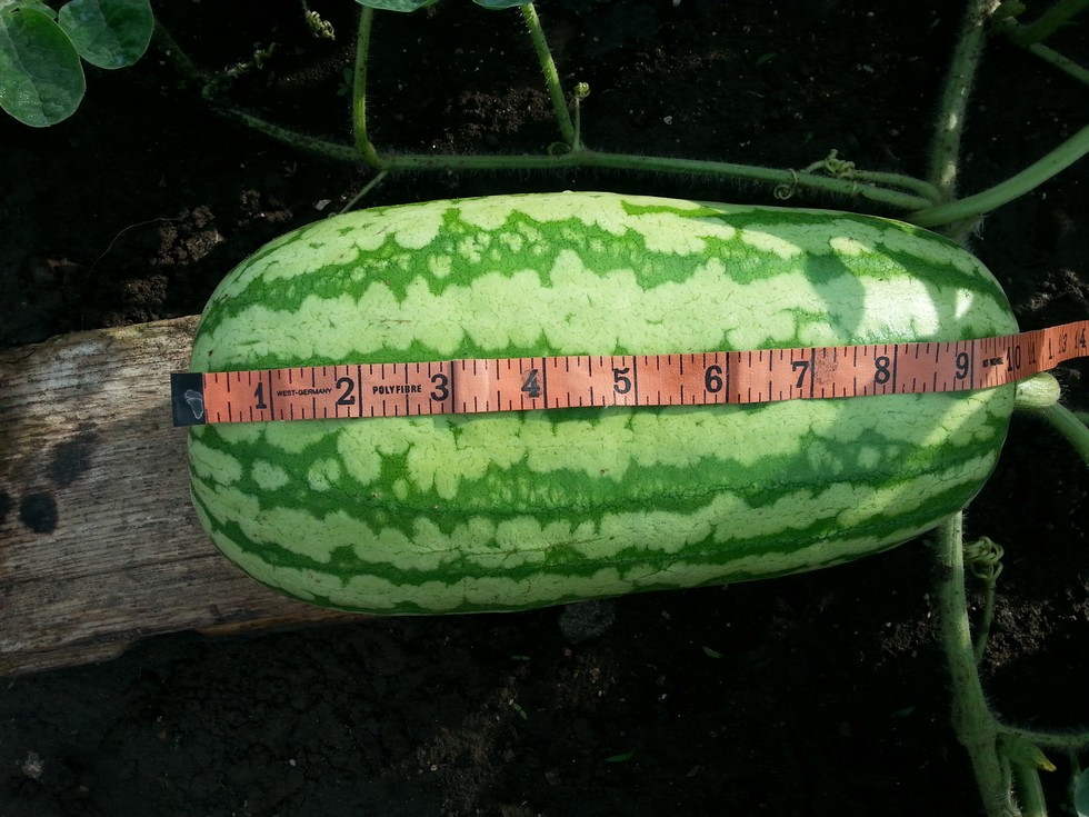I've committed to this melon on #3 plant. 5 dap, terminated all vines on this plant that has over 220 ft of vine. Trying to decide if I should term vine just past melon. Also trimmed stump area and covered.