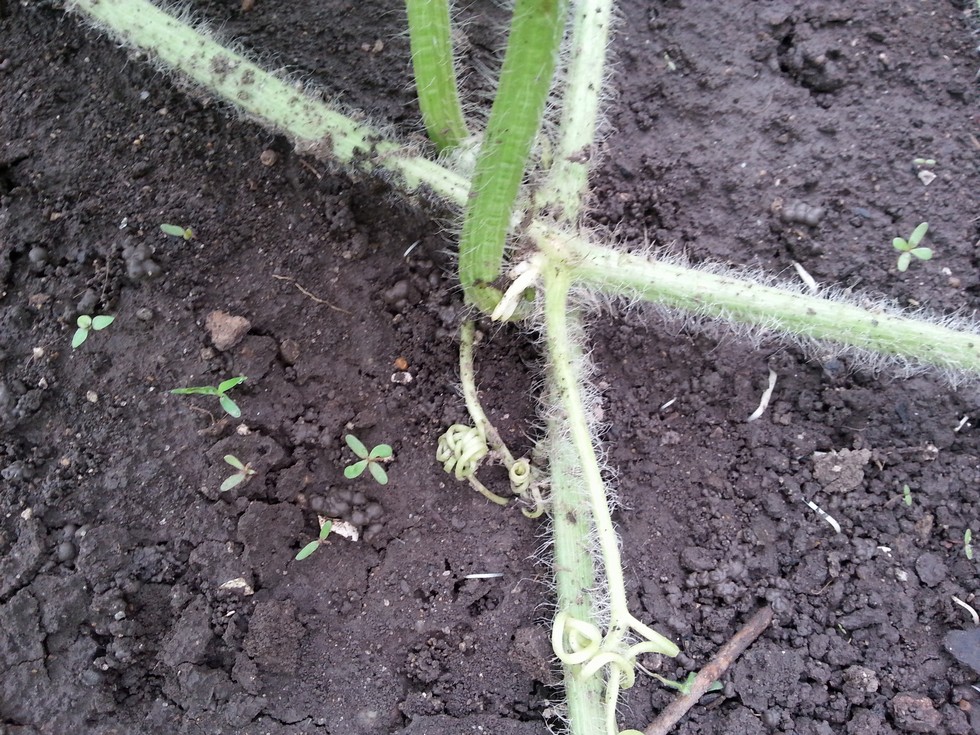 I think I've found out how I'm getting such rapid growth on the melons. Each node has a great root system and the nodes that are not yet buried are throwing out root taps from on top of the node like kin plants do. Didn't know they did that. You can see the roots coming up from the ground due to lots of rain. Massive root system everywhere on these plants!