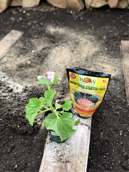 The last of our planting�s...giant cantaloupe...the 31 uow porkchop ...we grew this our first year along w a 601 pound pumpkin ...the plant is in worse shape than last time but we know more now...nice soil, food in the ground, mykos, azos, and of course , stater packs ...hopefully I can sink my teeth into a 50 lber....mmmmm