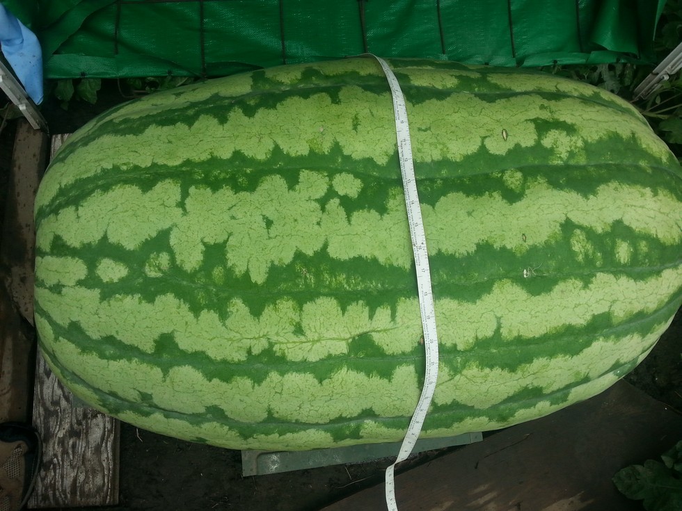 Pulled more culls off all of the melons plants this morning. Here is Fiona who by the way has out grown her new home & where the heck is her sitting board anymore? I put a tape around her to measure her girth...lets just say I've seen the 350.5 Kent youtube video of that same measurement and got a big grin on my face and its dap 50 for Fiona tomorrow. Good girl. The last 24 hrs she put on more weight than ever before. Yikes, 60 days till weigh-off.