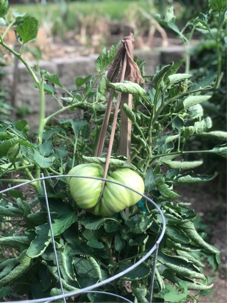 Quick peek in the mater patch ...lambchops 5.95 is starting to put on some weight....long ways to go yet...soil is VERY dry around her plants ...