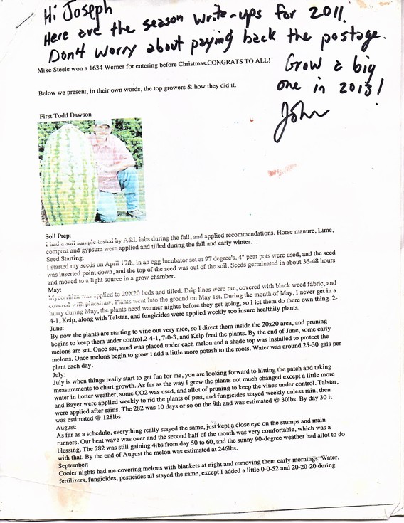 Its amazing on how good people will help you through the years and have little or no clue on just how much of an impact they have made in your growing ability. John (Big Moon) Ciesielski sent this bundle of melon diary's from various growers back in 2012 and I have read the darn thing over n over and then again & again and before putting it down heck I'd read it again front ta back and back ta front. Thanks John and to the growers who wrote up their technics in this crazy game of growin melons, I truly appreciate you all.