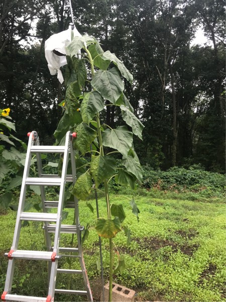 Giant sunflower is losing leaves but only 13 days until the fair!