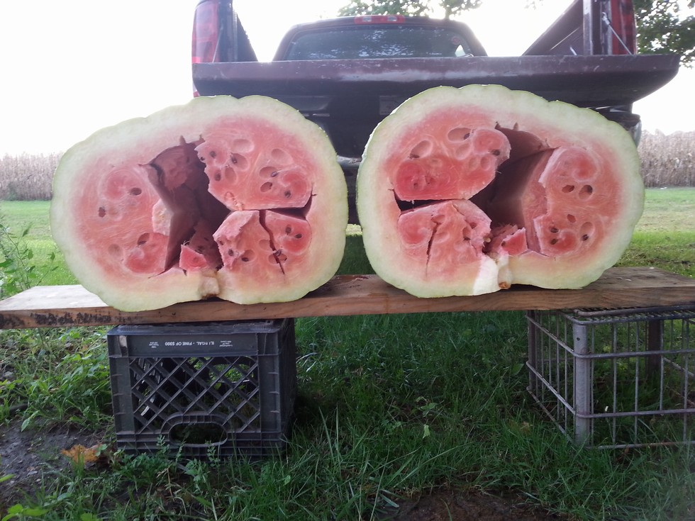 Paytyn cut open her 226 lb Mr. Hankey. Lots of seeds. I crossed Fiona aka 300.5 J. Young '18 x Mr. Hankey aka 226 P. Young '18 and Mrs. Puff 225 (UOW/DMG) was crossed x Fiona aka 300.5 J. Young '18. After drying out we will get all seed packets together for clubs that have requested them and to the winners of the guess Fiona's weight contest.