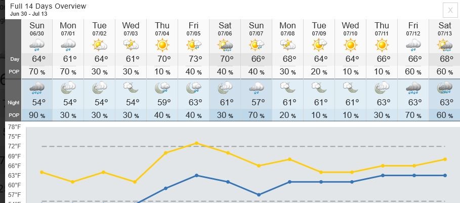 Sure hope this forecast changes for the better. Too cold. This is supposed to be summer.