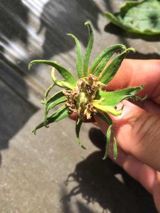 On July 1st I used an electric tooth brush on 6 first truss megablooms. Didn't give it much thought since my largest are always later in the season. If you flower looks like this after 12 days, it didn't take!