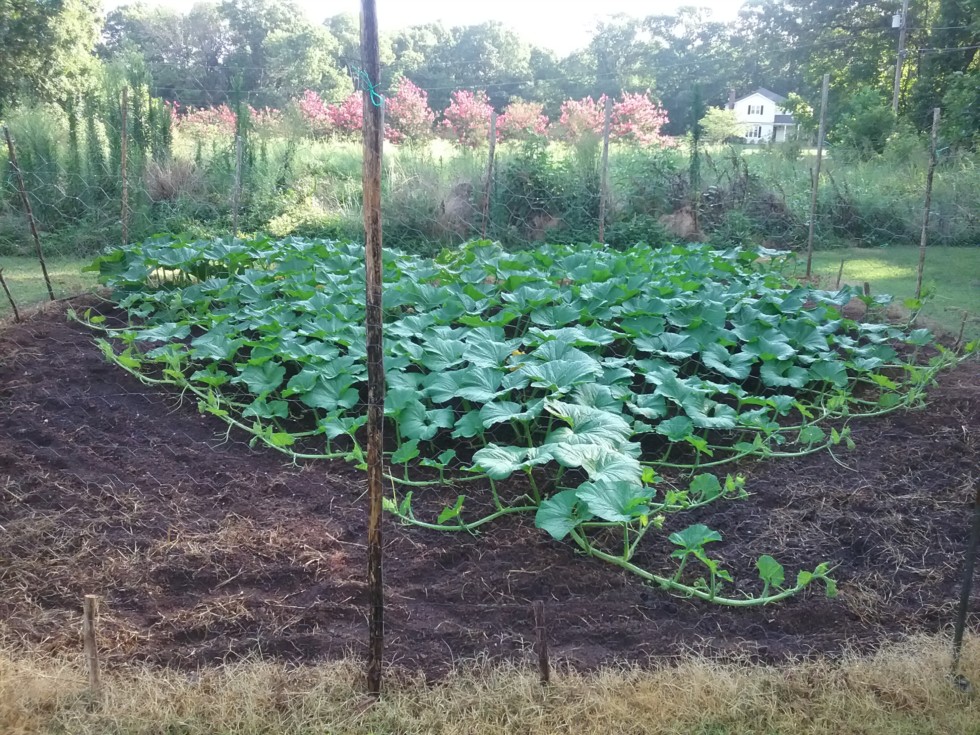 1172 Haist. Two problems: Her leaf stalks are weak and break if you so much as sneeze, and she is running out of real estate and showing no interest in putting on a squash. I'll give her every chance to succeed until it's time to pull her.