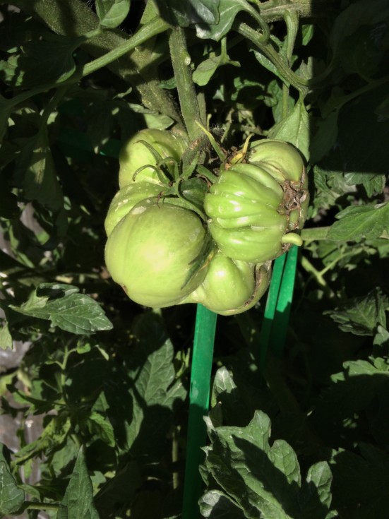 6.02 Spaziani. This one gets my heart pumping! A fully successful pollinated megabloom on the first truss. Five full shaped tomatoes arranged perfectly all around so they have room to grow to their full size. This is where the heavy ones come from. At 16 dap and nearly that many inches around.