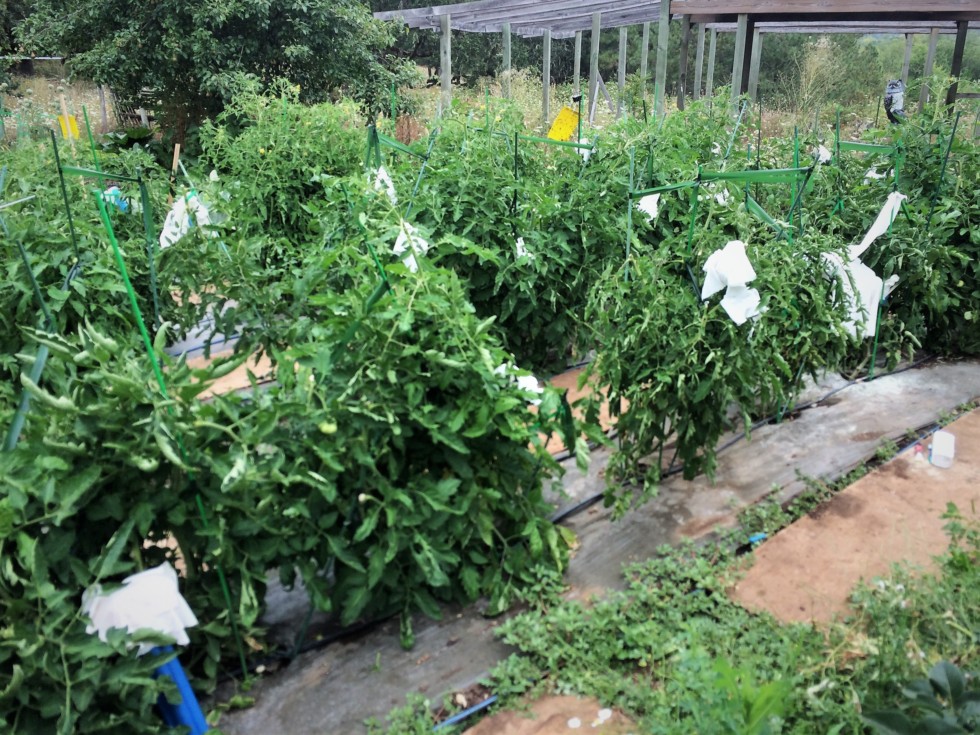 Working in the garden is a full time job, nitpicking every little thing. What ever happened to working in the garden for relaxation? There are about 30 or so smaller tomatoes growing I'm watching and keeping track of.