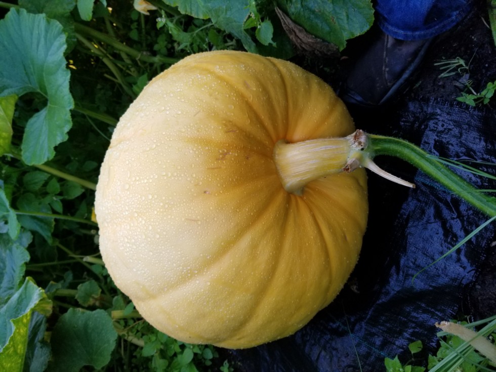 1800 Hoffman pictured. Showing more growth. This past weekend a visitor to the patch decided to remove my sprinklers. Bummed about that. But, innovation kicks in and now I have a easy way to install and remove the sprinkler system in a few minutes at less than 1/2 the cost of the one that got "borrowed" I'm just glad they didn't mess with the pumpkins.... I'll have to watch for that fun as we get closer to Halloween.