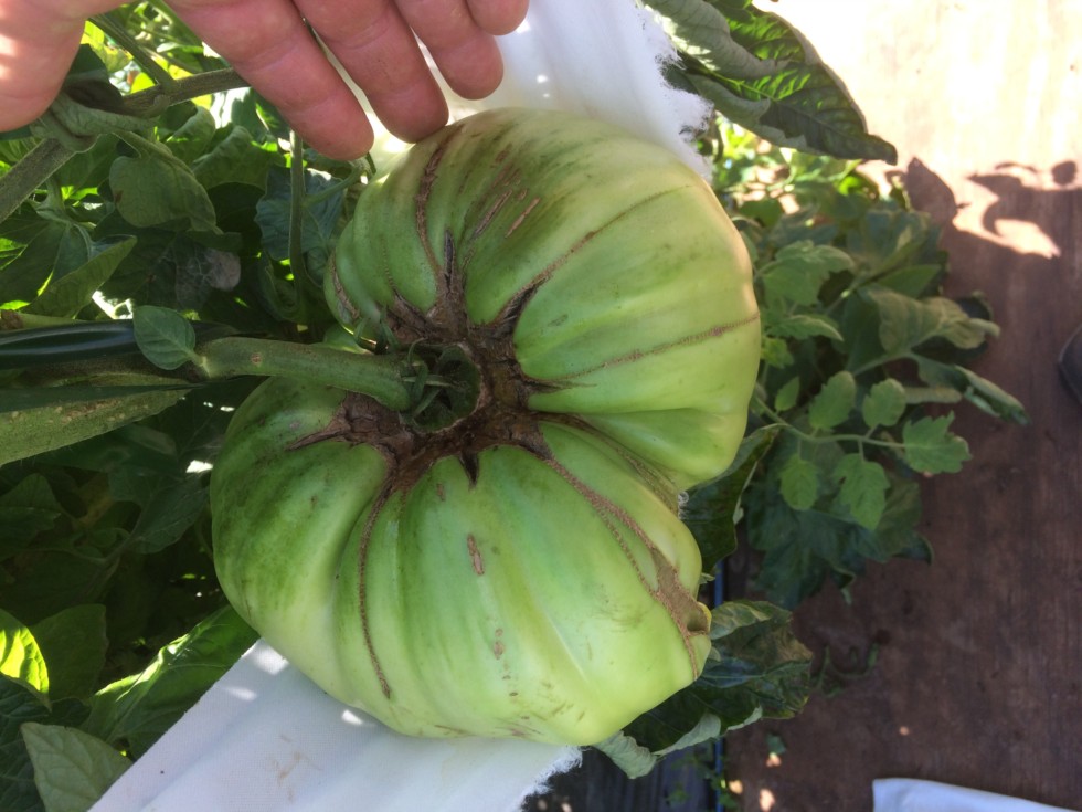 4.41 Spaziani MegaMutt D. Big single at 24". The fastest and most aggressive plant. There a couple of tomatoes on the same plant like this.