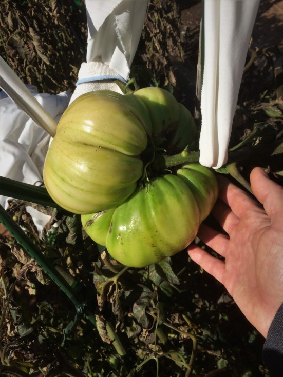 The last Big Marley. By the time I pluck if for the Oct. 18th weigh-off it'll be 75 dap. Insane! Cool temps in September kept them going. Plants are dead and tomatoes are just wrapped in towels so don't expect any growth.