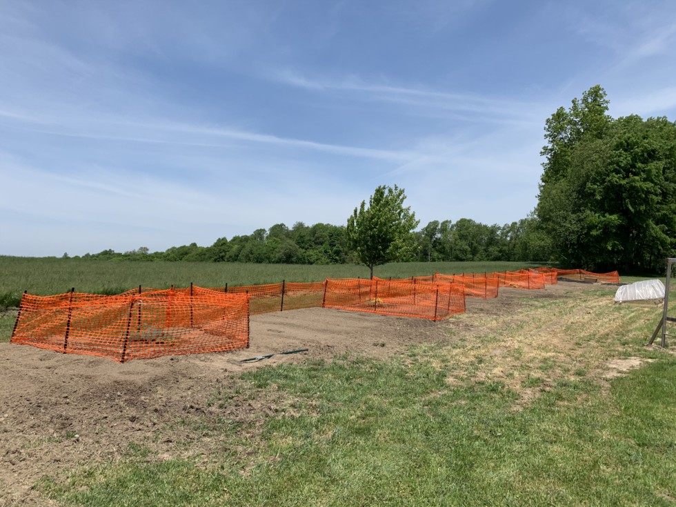 Great weather, Hoop houses off, wind fence up.
