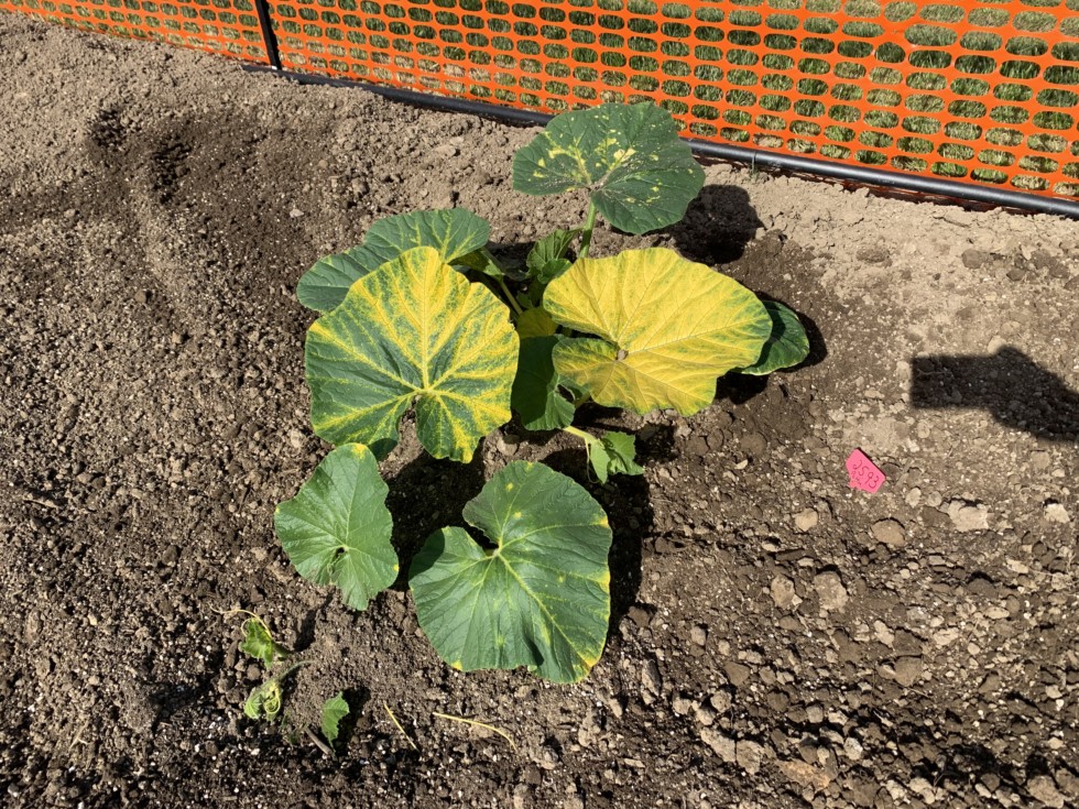 2593 Patton, apparently the Haist yellow gene is in this also, but healthy looking plant other than yellow color. Besides I want a Giant Orange pumpkin!
