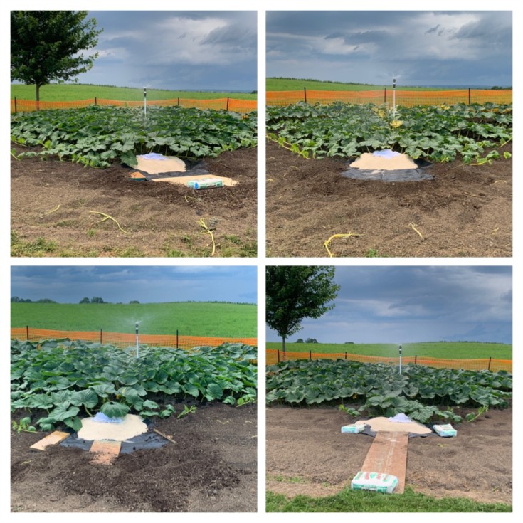 All four are 5-8 Dap. They are larger than a softball, but smaller than a basketball. Raked and leveled soil then placed pumpkins on a cut up trampoline with 4� of sand on top. More sand will be needed, but its a start. I wanted to get pictures of them uncovered but a storm came in and I got rained out.