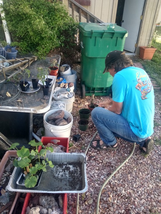 Transplanting the maters due to weather delay.