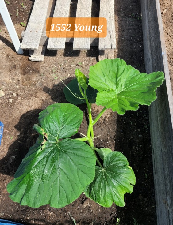 1552 Young has adjusted to the patch the fastest. It has the longest main vine. It really never slowed down at transplant. This plant gets 150 square feet to grow in.