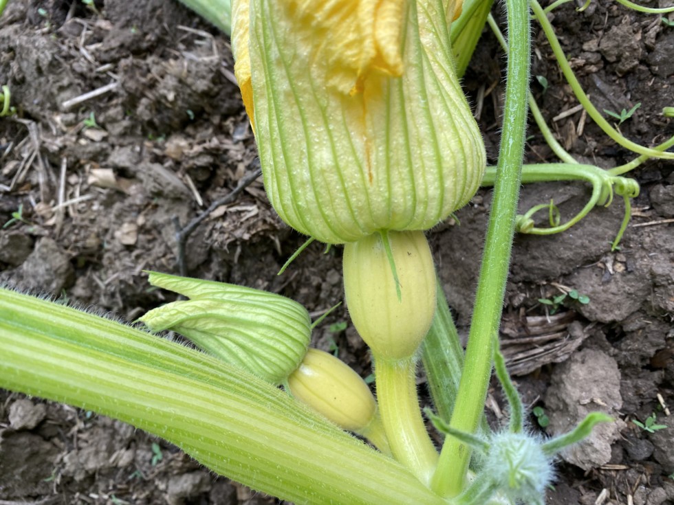 1883 bayuk plant. This is on the smaller plant it is throwing double pumpkins whenever the main is flowering. However it is not a double vine. I like the look of the shape on the 1883 fruit. It looks like it will be a long pumpkin.