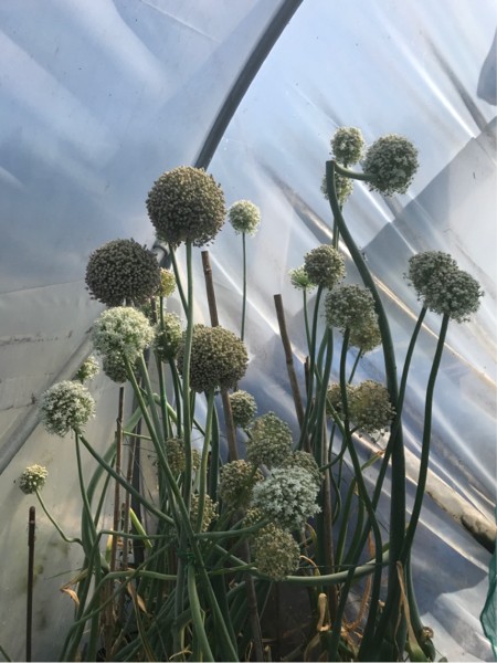 There seems to be a shortage of giant onion seed at the moment. I put some of last year�s down to seed and they are doing really well. Pollination has been excellent and I should have a lot to share in the seed exchanges at the end of the year.