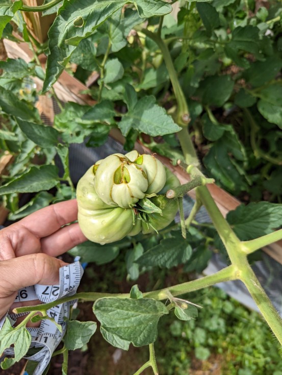 Here is the third tomato on the Dan S plant. This one or the new one will probably have to go away.