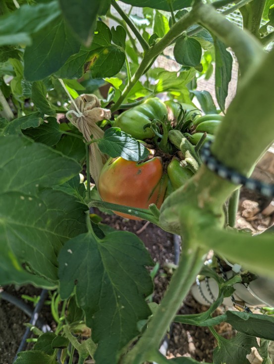 Color on one lobe of the old man tomato on the strickler plant. I'm guessing this might of been caused by the malfunction of my hose timer.