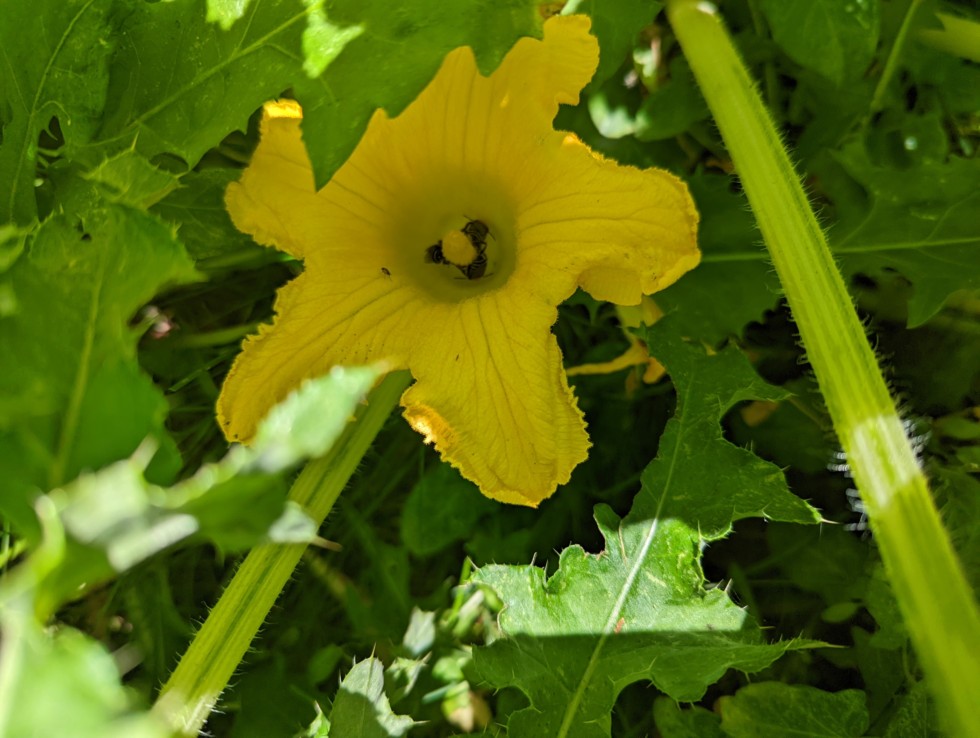 The bees are always resting in the flowers in the morning. This is probably giant pumpkin growers cross-pollination nightmare. Lol