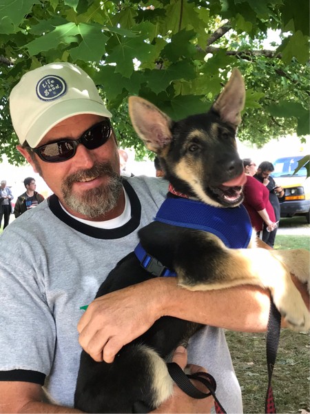 Come on guys ! I promise I won�t pee on Porkchop this time. I was just little then and could not hold back. It�s not everyday you get held by a world record tomato grower !!!