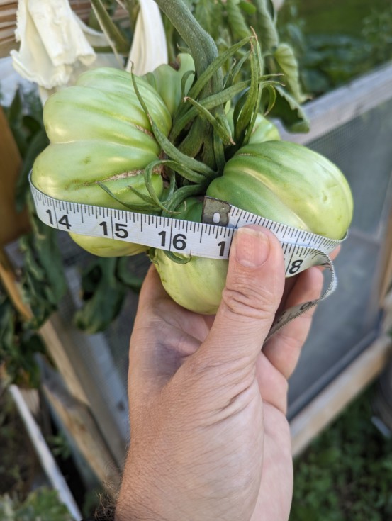 The top strickler tomato (biggest mega of the year) had picked back up and is growing fairly good right now. After chopping off the bottom tomato and associated branch I'm hoping this will boost the growth.