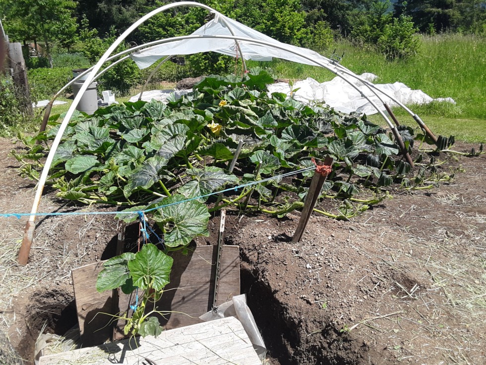 Right side more damaged than left side. Still have one undamaged baby pumpkin on the main. But I bet that cost me 300 lbs. Darn it.
