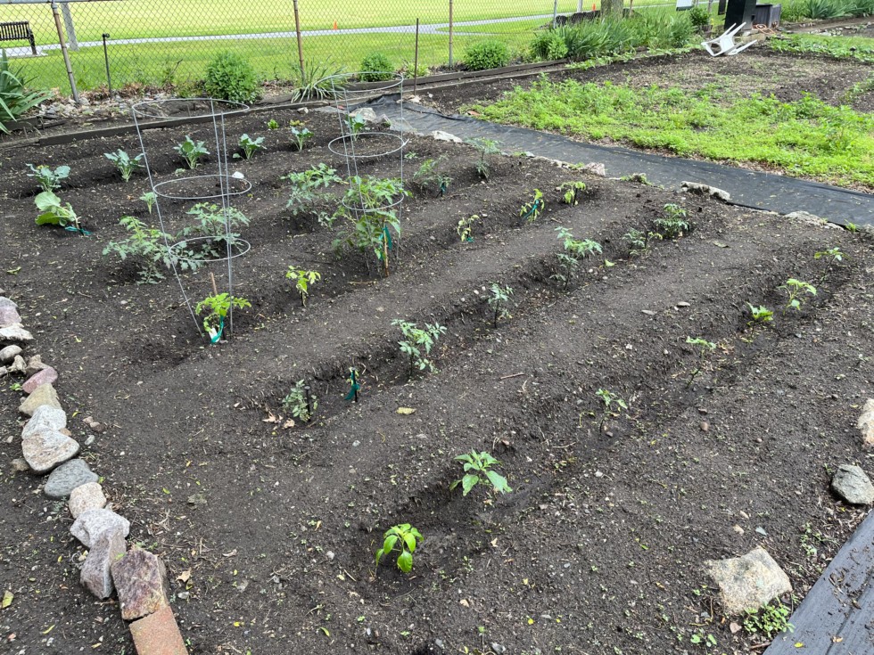 As of today my girlfriend�s garden is pretty much fully planted. With the exception of some of the lettuce row that didn�t make it. In addition to the plants I mentioned we are also growing a row of Celebrity tomatoes. We have never grown determinate tomatoes so this year will be an experiment. The pepper plant in the foreground is a Peri-Peri, usually associated with Africa, Portugal, and Portuguese immigrant communities in the US.