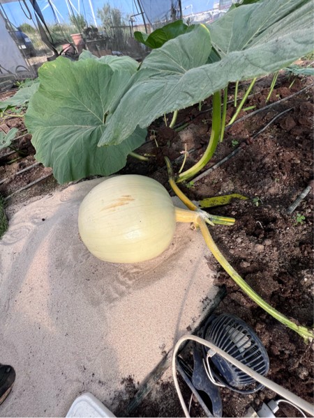 I lost the whole plant, due to a catastrophic error. Cut the previous pumpkin, and disinfect the cut once with peroxide, but do not check it. I think some insect transmitted something in the wound, and the node before my good pumpkin bled. Cut the whole plant, but leave the pumpkin with 4 metres of plant after the pumpkin, to do a test, to know if the pumpkin grows with the plant that is after the pumpkin. At the moment these days it has grown 15 inches. I will leave this pumpkin, to get the seeds, both 2365 and 1989 were incredible plants, I think it can be a good seed, although in the end it is a small pumpkin.