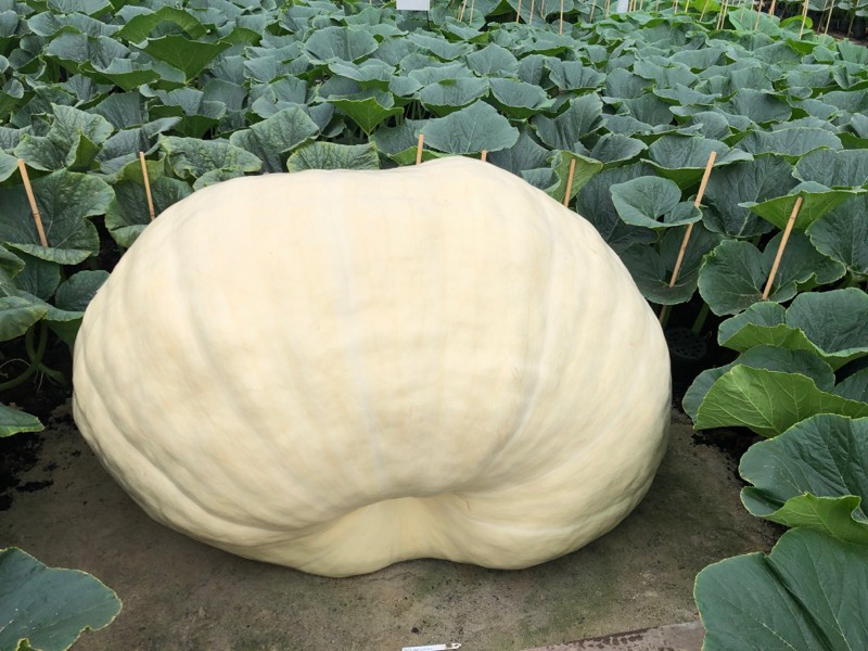 We�ve also never seen a white pumpkin without a single cantaloupe mark at this stage of their growth. This makes it extremely easy to predict that she has the potential to be absolutely massive.