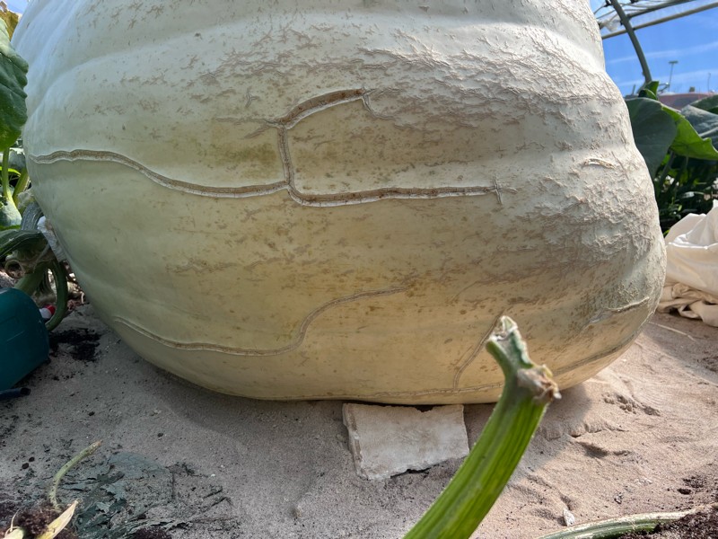 Day 62 1735 pounds. I was 1 week without watering when the cracks came out, and putting foliar calcium, and sheet with calcium. I only watered one day with calcium on the floor in that week, and the pumpkin stop grow. When I was 10 days old, I grew up very fast, just like your little sister, and I also stopped watering,