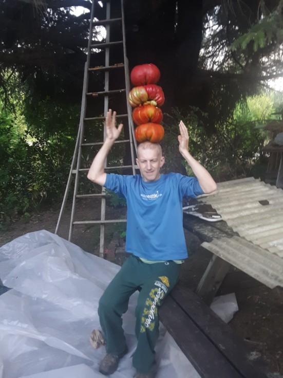 Lbs of tomato balanced on a crazy person's head, ha ha. Hope you enjoyed your disappointment, be sure to share your disappointment with others, but... please pretend its the new record on the message board, CUZ we gotta get Dan to worry a little :) :) :)