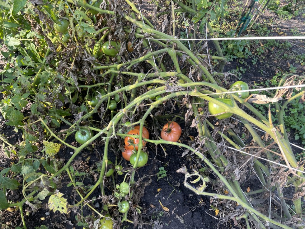 I pruned some of the dead growth on the Celebrity Tomatoes. Hopefully more sunlight will help ripen them up this month.