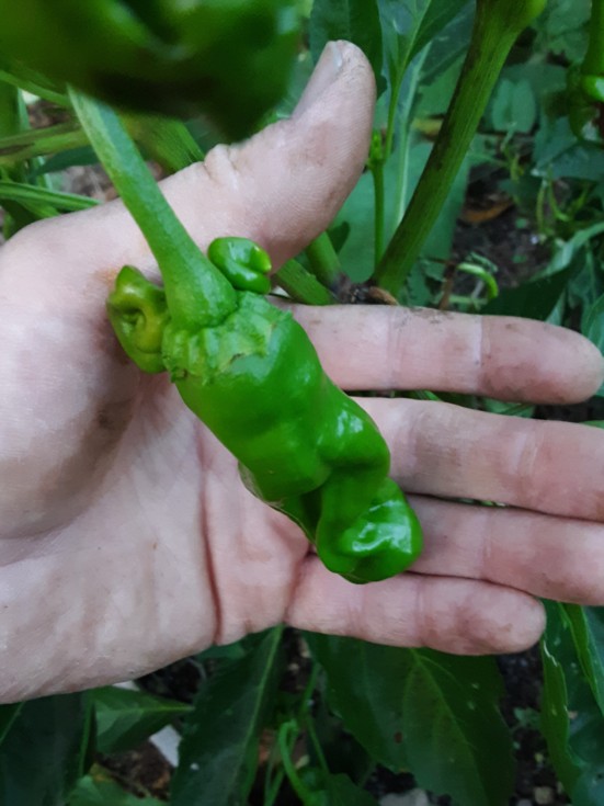 I've grown more than my share of phallic or even female, veggies... this is a Peter pepper which, no joke/no photoshop... literally has two small balls. I mean, c'mon... seriously?