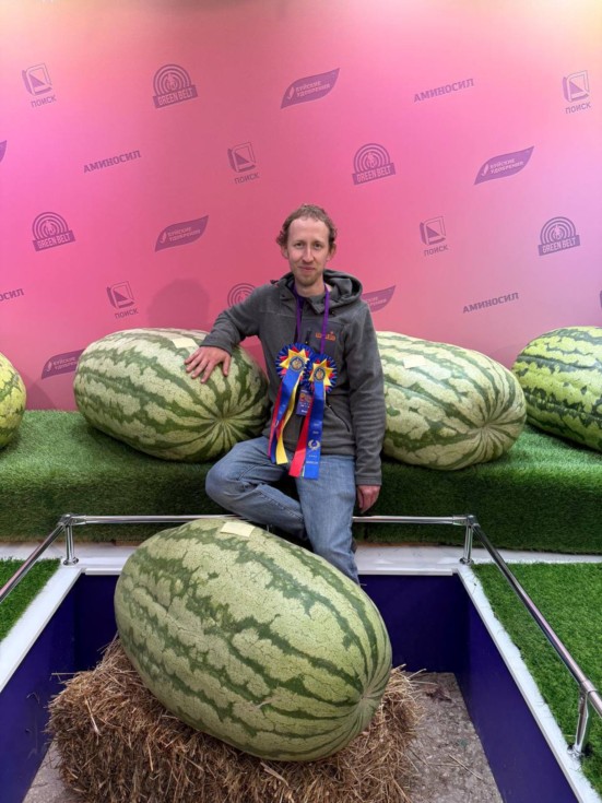 The heaviest Russian watermelon weighing 144,8kg (319.2 lbs) (+5%) was grown by Maxim Lebedev (2025) This is his second season in growing giant watermelons. Watermelon was grown from 202.5 Crews 2019
