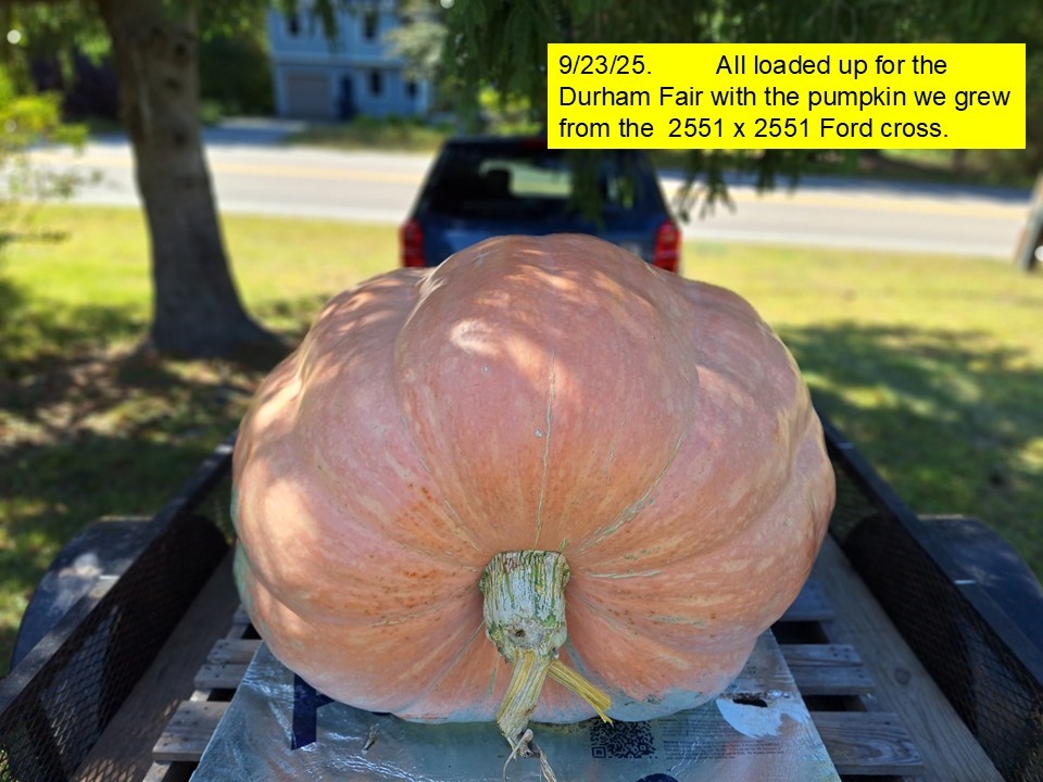 We are all loaded up with a pumpkin (from the 2551x2551 Ford cross) for the Durham Fair today. Should be a great event.