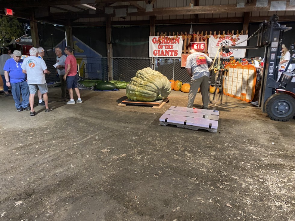 The Durham fair was the place to be last night, so so many giant pumpkins, and a few squash. It was probably the most exciting weigh off I have ever attended. The top 3 pumpkins were phenomenal. This is Joe jutras' 1611 squash. This squash may become famous in the near future for what it's offspring will produce!! What a beast!