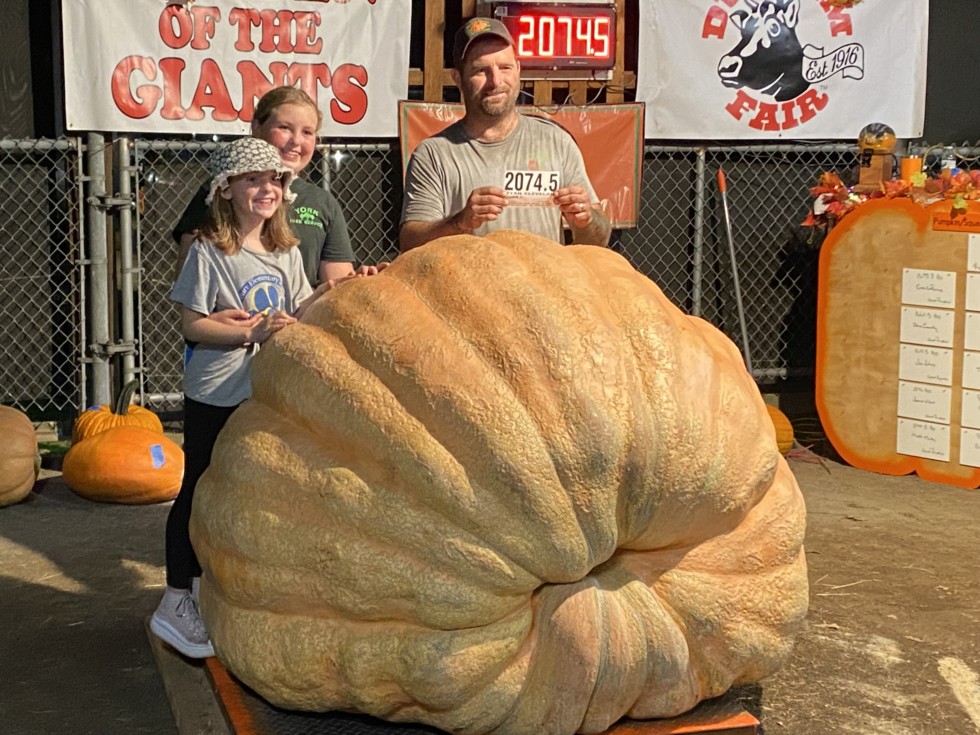 Here is Ryan Cleveland's massive 2nd Place Pumpkin on the scales. The crowd erupted when this Pumpkin was weighed. It was a new Durham fair record for a short time. Congratulations Ryan.