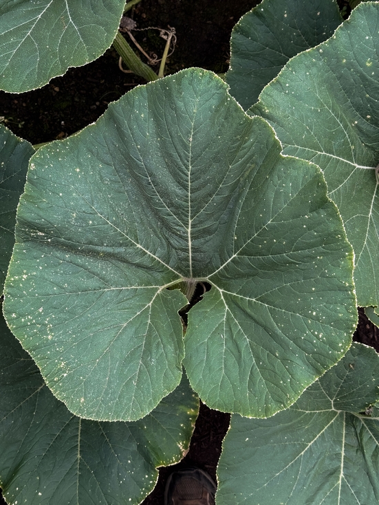 6 days until weigh off. My goal for the plant this year was to keep bacterial disease under control. This picture shows successfully treated downey mildew, much better than previous years. I have mainly used Daconil in the past, which was not very effective. This year I used a mixture of Kocide + Manzate Pro Stick, alternated with Regaila. Also every time I sprayed I added Cease, a biofungacide to colonize the plant and prevent other pathogens from being able to find a home. I also added Natural Wet, a Yucca plant extract/wetting agent. This combination worked significantly better this year. The plant itself also seemed much more resistant to disease which is a likely a significant factor as well.� This spray program was found to be effective in a 2019 study done in Illinois, summarized here: