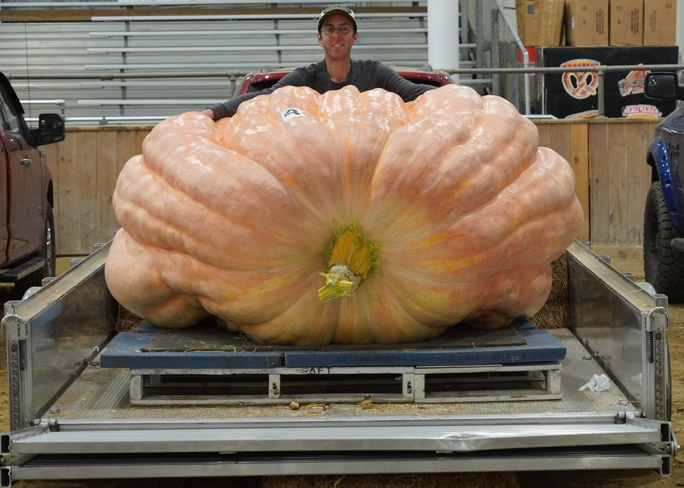 It is hard to get a good idea of the shape of this pumpkin in a picture. However, I think from this angle people can see why some referred to this pumpkin as "The Mattress". It is not a tall pumpkin but certainly wide. Even though this trailer is the widest legally allowed, the inside bed width of 82" is almost entirely taken up by the width of the pumpkin.